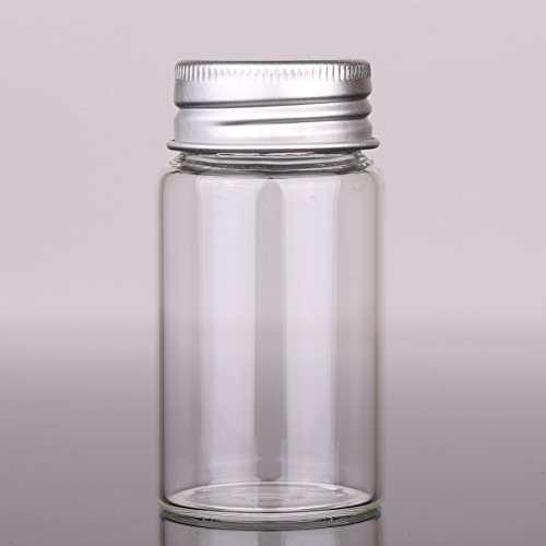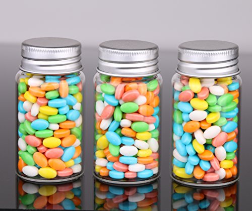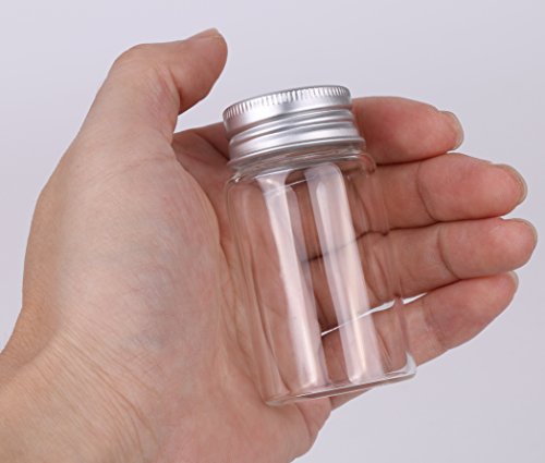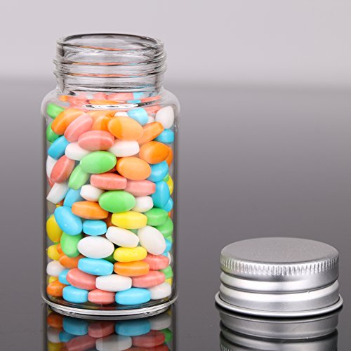 MAXMAU 25 Pack 50ml Clear Glass Bottles Vials Wedding Candy Jars with Aluminium Lids Cover Party Favors Kitchen Storage Organization Product Sets