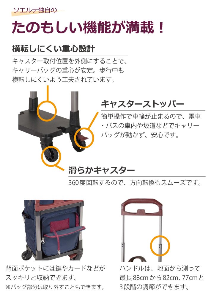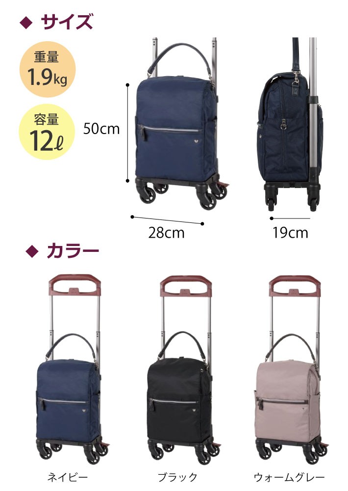 お稽古事などアクティブなお出かけを支えるキャリーケース ソエルテ リゾルート L 12L 55802 ショッピングカート シルバーカー 歩行器 キャリーバッグ スーツケース soelte エース株式会社 送料無料 代引不可 同梱不可