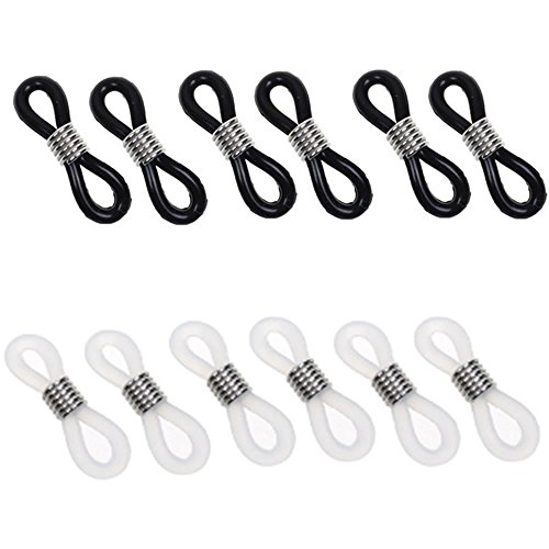 BoNaYuanDa 12pcs Rubber Metal Ends for Eyeglass Chain Necklace Chain (6pcs Black Color +6pcs Clean Color)