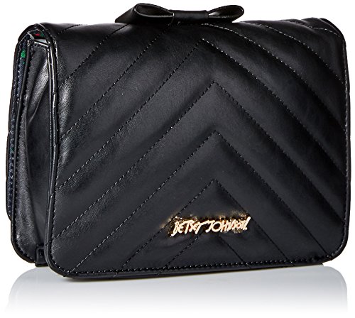 -. Binding : Apparel -. Brand : Betsey Johnson -. Department : womens -. Feature : Chevron-quilted cross-body bag featuring row of bows at center and gold-tone logo hardware at back / Faux-leather-and-chain cross-body strap -. Label : Betsey Johnson -. Manufacturer : Betsey Johnson -. Model : Black Tie Affair Crossbody -. ProductGroup : Apparel -. ProductTypeName : HANDBAG -. Publisher : Betsey Johnson -. Studio : Betsey Johnson -. Title : Betsey Johnson Tie Affair Cross-Body Bag