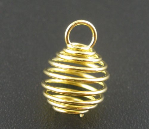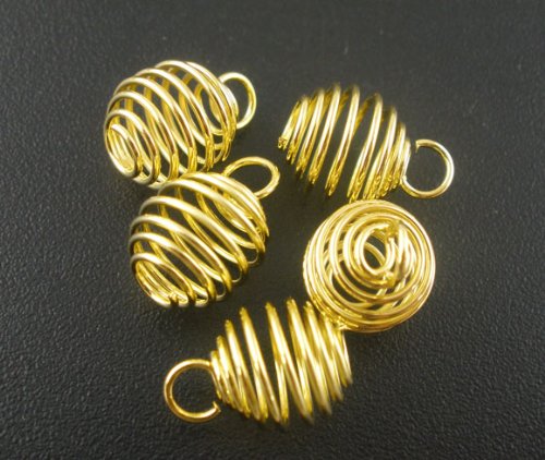 Housweety 100PCs Gold Plated Spring Bead Cages Pendants 8x9mm