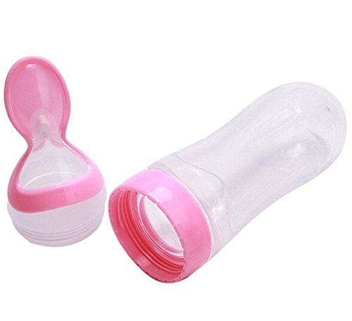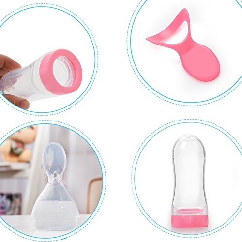 3 Ounce Feeding Bottle, Homure Silicone Squeeze Baby Food Dispensing Spoon for Infant Newborn Toddler Food Supplement, Pink