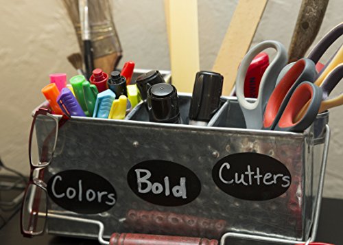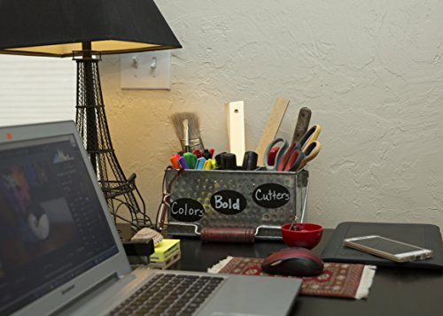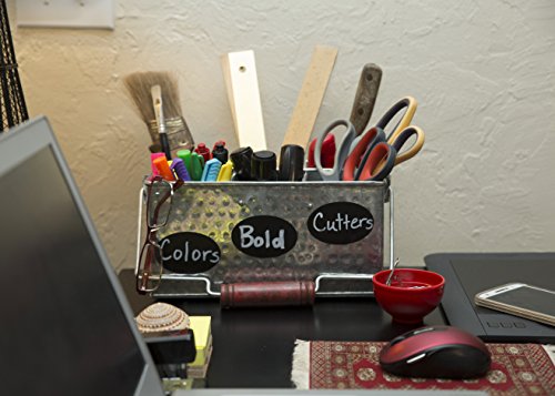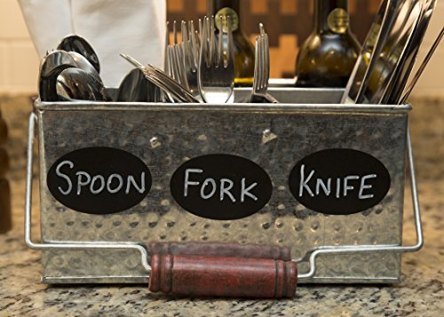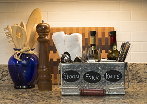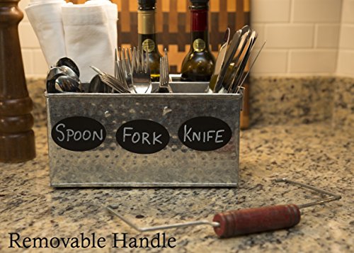 Shabby Chic Hammered Tin Utensil Caddy and Kitchen Organizer with Reusable, Removable Chalkboard Labels & Chalk Pen