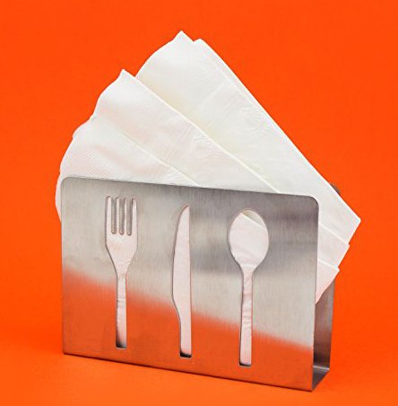 -. Brand : Adorox -. Color : Silver -. Feature : A modern design with cut-out cutlery design / Approximate Dimensions: 4.7 L x 3.3 H x 1.2 W / Material: Stainless steel / Perfect for for public places like coffee shops and restaurants / Compliments most home or kitchen decor; from dining tables or kitchen counters -. Label : Adorox -. Manufacturer : Adorox -. ProductGroup : Kitchen -. ProductTypeName : KITCHEN -. Publisher : Adorox -. Studio : Adorox -. Title : Adorox Stainless Steel Paper Napkin Holder Silver Cut-Out Cutlery Utensil Design Rack