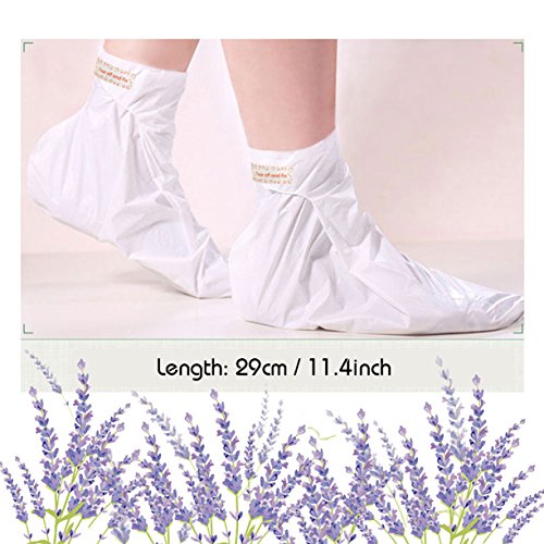 -. Feature : Contain milk extract and a variety of plant extracts, which make it mild and non-stimulating / Moisturize the feet skin to soften skin and remove aged cuticle, and leave feet skin supple and exquisite / Improve dry skin and make your feet smooth / Highlight the tender and beautiful feet / Package Included: 2 pairs of Foot Mask, Share with him (or her)