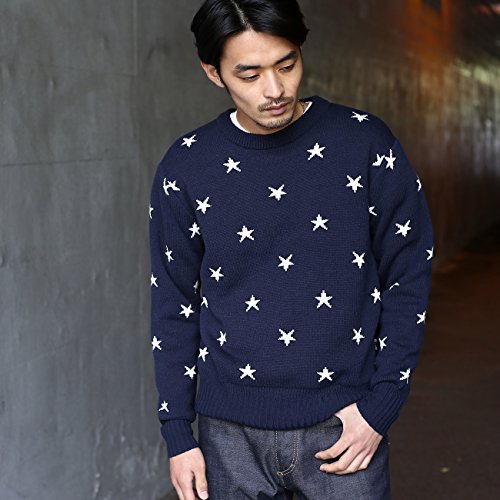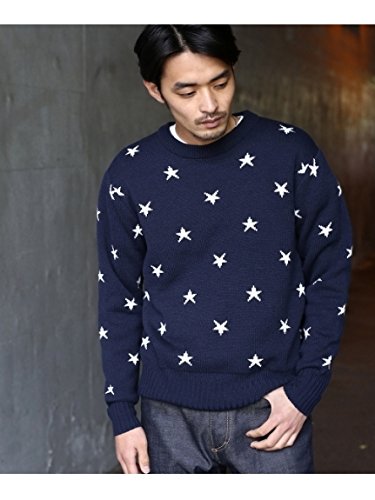 -. Title : BASE CONTROL(Men)(ベースコントロール(メンズ))【WEB限定】スター総柄 ミドルゲージ クルーネックニット