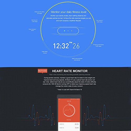 - Feature : Automatic sleep monitoring analyzes your sleep quality. / Monitoring of heart rate Real-time monitoring and recording, scientific planning exercise / Monitor your activity levels, track walking distance and calculate calories burned. Achieve the daily exercise targets you set and work towards a healthier lifestyle! / Sync with the app to analyze your fitness and sleep activities to help you improve your lifestyle. / US ADI sensors to detect movement and sleep quality Light-sensitive version of the real-time monitoring of heart rate, sports science