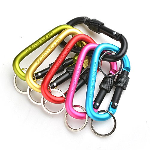 AGPtek D-shape Aluminum Screw Carabiner for Fishing, Hiking, Traveling with Key Ring Locking Clip Spring Snap Hook Keychain Outdoor Buckle -- Assorted Colors (Set of 6)