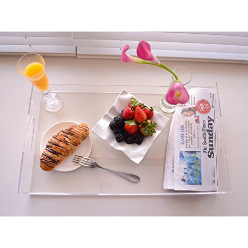 22 inch Premium Large Clear Acrylic Multipurpose Decorative Butler Tray / Breakfast Serving Tray with Handles