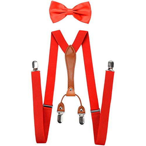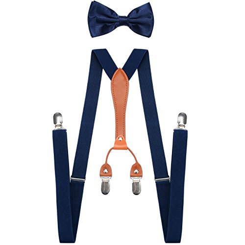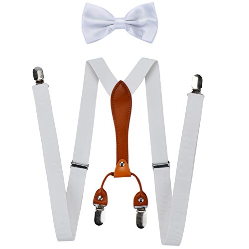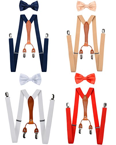 YanLen Pack of 4 Men's Suspenders Bowtie Set Elastic X Band Stainless 4 Clips
