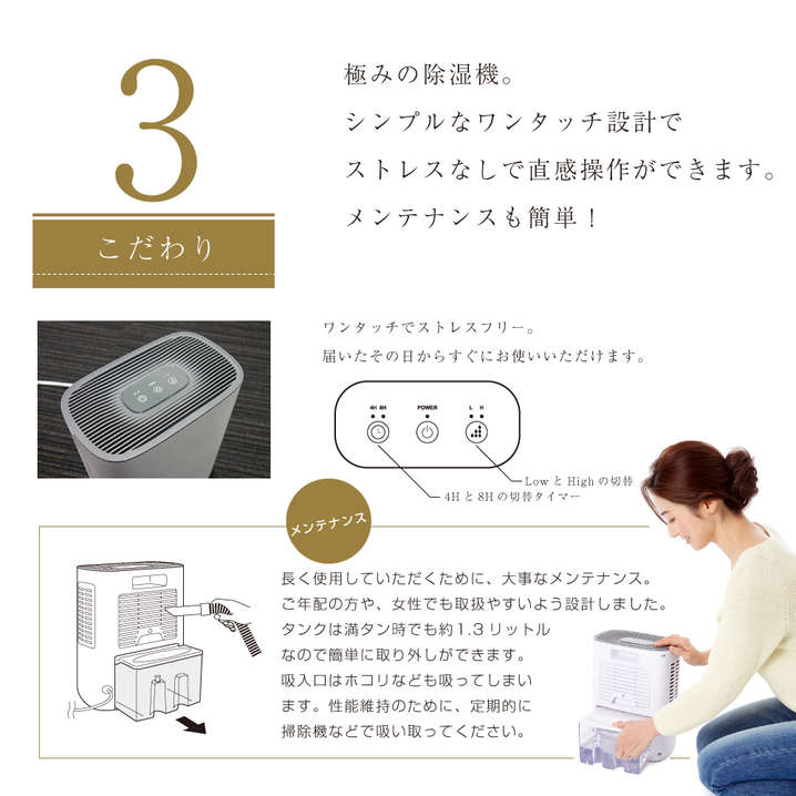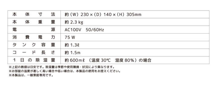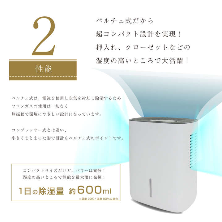 ●コンパクトサイズだけどパワーは充分。1日の除湿量約600ml