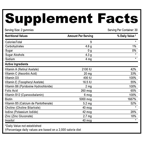 -. Feature : SUGAR FREE GUMMY VITAMINS - Unlike Many Sugar Bear Hair Gummy Vitamins Out There, Our Gummies Are SUGAR FREE But Comes In Tasty Strawberry And Coconut Flavor. / ALL NATURAL HAIR GROWTH GUMMY BEAR VITAMINS - Stimulates & Nourishes Hair Follicles & Scalp. Designed to Revitalize, Strengthen and Protect For Stronger, Thicker & Long Lasting Hair. Also recommended For Thinning Hair, Weak Hair or Hair Loss And Receding Hair. / OVER 15 HAIR NURTURING INGREDIENTS: Including Biotin, Vitamin A, Vitamin C, Vitamin D3, Vitamin E, Vitamin B6, Choline, Iodine, Zinc & More! / MADE IN USA - Manufactured Under The Highest Quality FDA, GMP & NSF Regulations and USA Standards. Free Of Contamination, Molds And Toxins / RISK FREE - Comes With Our 90 Day Customer Satisfaction 100% GUARANTEE! No Questions Asked, 100% Money Back Guarantee When You Purchase Today!