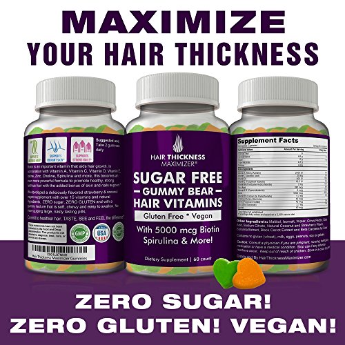 -. Title : SUGAR FREE Hair Gummy Bear Vitamins By Hair Thickness Maximizer | Vegan, Gluten Free Natural Hair Growth Vitamins Enhanced With Biotin & Over 15 Vitamins & Natural Ingredients