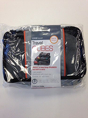 Product Description Sort It ® Organize It ® ORB Travel Packing Cubes are Premium Designer Coordinated travel accessory. The 3 piece Packing Cube Set is the ultimate in convenience for easy travelling. It is lightweight and durable, the cubes come in three sizes and fit nicely into any sized suitcase or carry-on. These sturdy packing cubes can be used for travel, household organization, or any other storage need. Imagine unzipping your suitcase after a long day of traveling and everything is exactly where you packed it. Nothing's shifted, crushed or wrinkled. Plus, since Packing Cubes are color-coded and have mesh tops, they organize your luggage and make it easy to find things right away. And if you're staying somewhere for a night or two, there's no need to live out of your suitcase. Just place your Packing Cubes in the dresser drawers and there you go. Large: 17.5 x 12.75 x 3.25, Medium: 13.75 x 9.75 x 3, Small: 11 x 6.75 x 3 Breathable with Mesh top panel for easy identification of contents, and ventilation Interior seams fully finished for durability Durable, rip stop fabric soft mesh won't damage delicate fabrics Webbing handle for convenience when carried by itself Double zipper pulls make openingclosing simple and fast 0