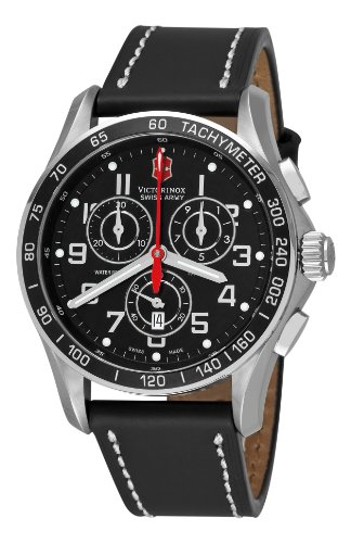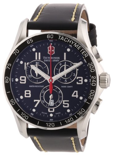 -. Binding : Watch -. Brand : Victorinox -. Color : Black -. Department : mens -. EAN : 0845960009003 -. Feature : Round watch with black tachymeter toP.R.Ing and blue dial with date window, red seconds hand, and three chronograph subdials / 45 mm stainless steel case with anti-reflective sapphire dial window / Quartz movement with analog display / Leather band with buckle closure / Water resistant to 100 m (330 ft): In general, suitable for swimming and snorkeling, but not scuba diving -. Label : Victorinox Swiss Army -. Manufacturer : Victorinox Swiss Army -. Model : 241444 -. MPN : 241444 -. PackageQuantity : 1 -. PartNumber : 241444 -. ProductGroup : Watch -. ProductTypeName : WATCH -. Publisher : Victorinox Swiss Army -. Size : Standard -. Studio : Victorinox Swiss Army -. Title : Victorinox Swiss Army Men's 241444 Chron Classic Stainless Steel Watch With Black Leather Band -. UPC : 845960009003
