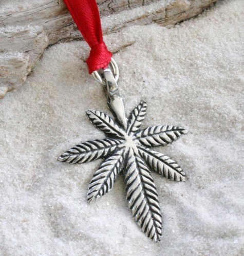 Pewter Medical Marijuana Pot Leaf Christmas Ornament and Holiday Decoration