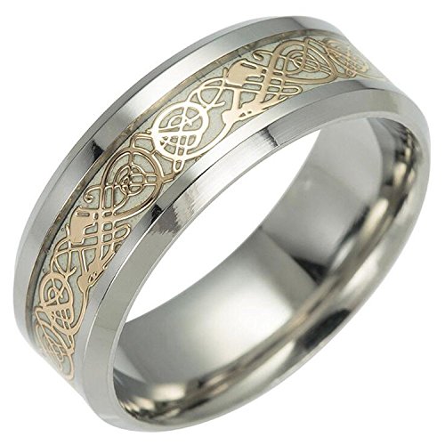 -. Title : Y-YING サージカル ステンレス 暗闇 で 光る 蓄光 メンズ リング 指輪 結婚 指輪 かっこいい 男性用指輪 ゴールデン ドラゴンデザイン