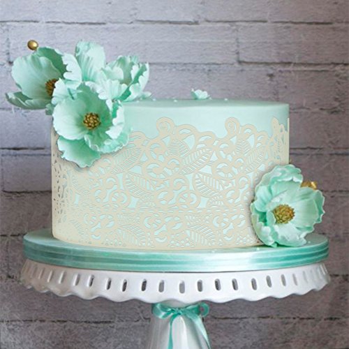 Funshowcase Large Pre-Made Ready to Use Edible Cake Lace Leaf Scroll Ivory White 14-inch 10-piece Set