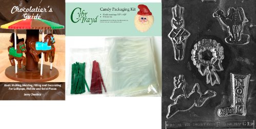 Cybrtrayd Assortment with Stocking Chocolate Mold with Chocolatier's Bundle of 50 Cello Bags, 25 Green and 25 Red Twist Ties and Chocolatier's Guide