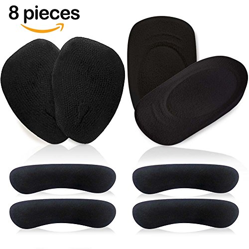 1.Heel Cups: (1) Provide extreme cushioning (2) Reduce foot pain fatigue (3) Adjust the size of shoes 2.Forefoot Cushions: (1)Help metatarsal area of the foot relief pain. (2)Helps to reduce pain and discomfort of your forefoot. (3)Help reduces callus and corns on the ball of the foot. 3.Heel Grips: (1) Protects from blisters and soreness. (2) Heel lines to prevent shoes from slipping. Using Method: Step 1: Clean your shoes and keep them dry. Step 2: Adjust the position until you feel comfortable. Step 3: Remove plastic backing. Step 4: Stick the pads to the shoes. Package Include: 2* PCS Heel Cups 2 * PCS Forefoot Cushion 4* PCS Heel Grips Your satisfaction is our top priority. We believe in the quality of our products; we think you should be given a chance to try us out without any risk. That's why we're able to back it up with Our No Risk 100% 0