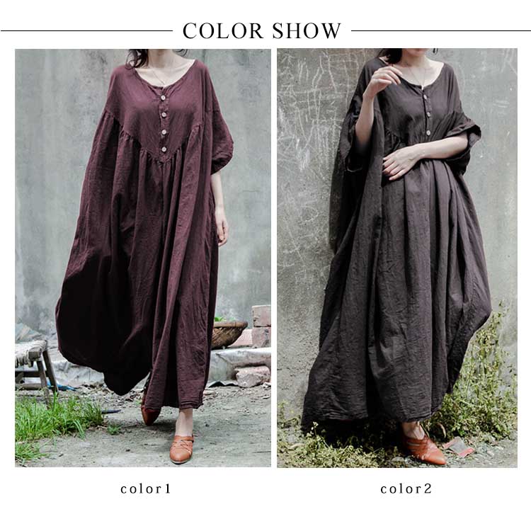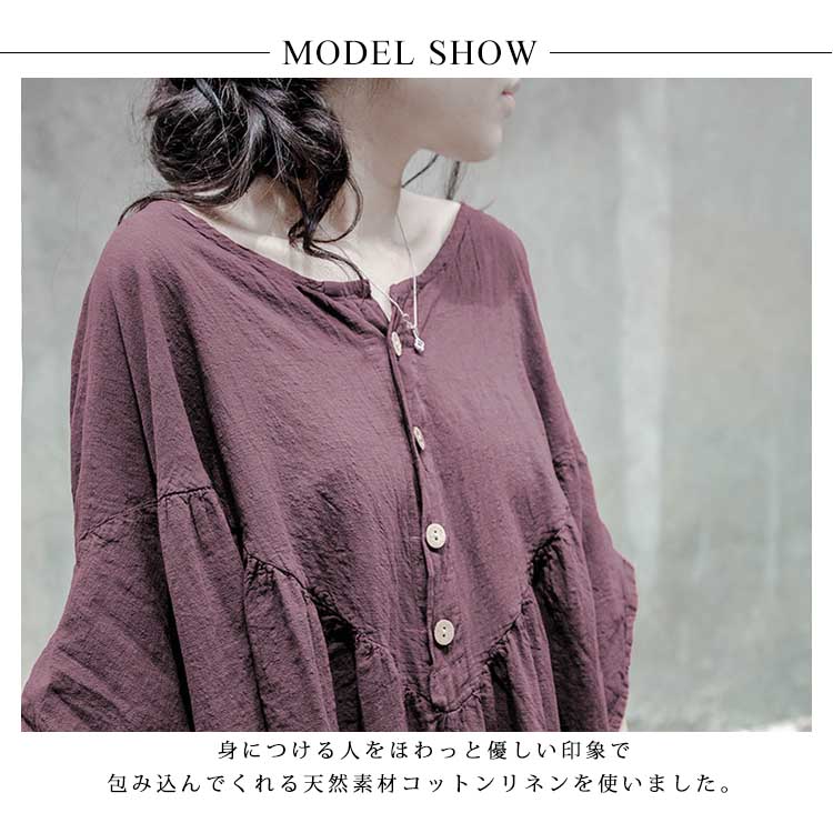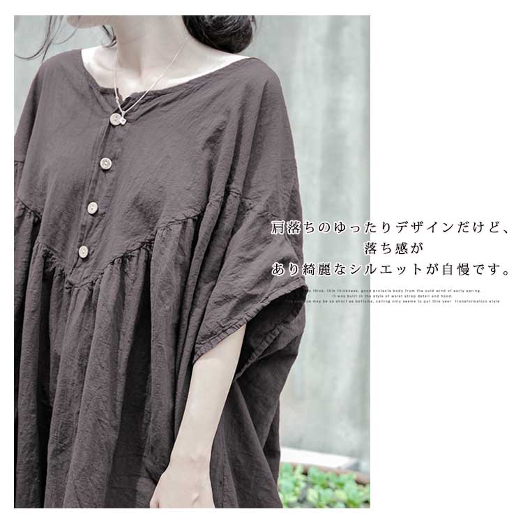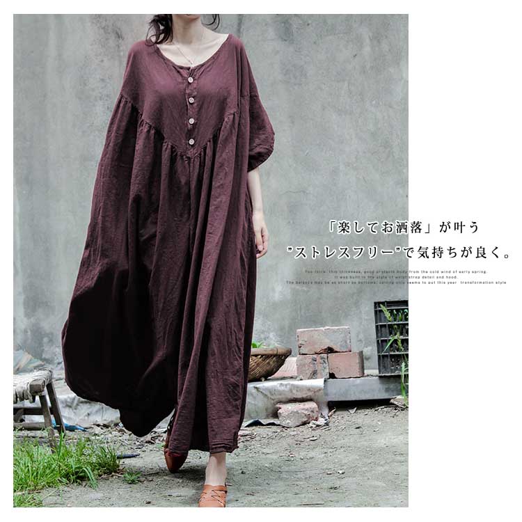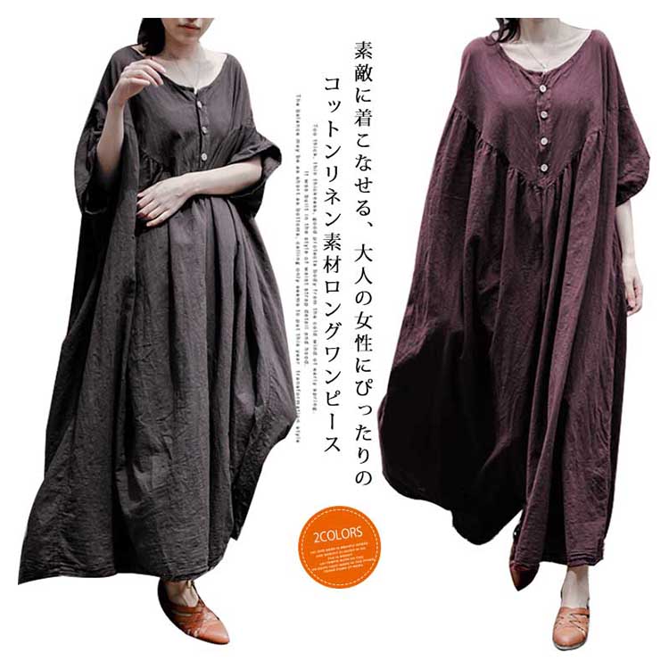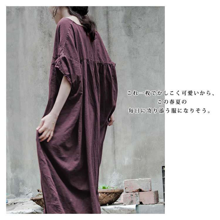 | 素敵に着こなせる、大人の女性にぴったりのコットンリネン素材ロングワンピース身につける人をほわっと優しい印象で包み込んでくれる天然素材コットンリネンを使いました。肩落ちのゆったりデザインだけど、落ち感があり綺麗なシルエットが自慢です。「楽してお洒落」が叶う”ストレスフリー”で気持ちが良く。これ一枚でかしこく可愛いから、この春夏の毎日に寄り添う服になりそう。 | |