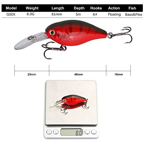 원본상품명: Goture(ゴチュ?ル) クランクベイトルア? 5個 4.8cm 8.1g 1オモリ+5ボ?ル入り バス トラウト ?流釣り
