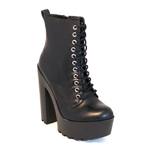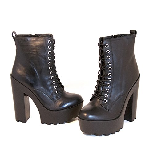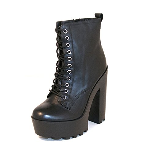 - Feature : Steve Madden Steve Madden Global - Black Leather High Platform/Heel Lace Boot / Trends : Women Steve Madden womens