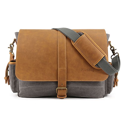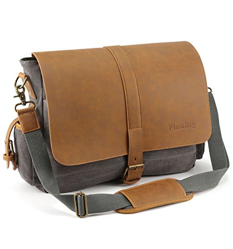-. Title : Plambag Large PU Canvas Messenger bag 16.5 Inch Laptop Shoulder Bag