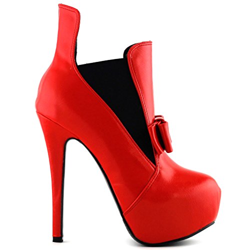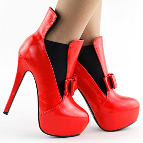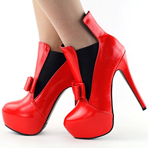 (Show Story)/Women's/Boots/DIRECT FROM USA/Show Story Lady Red/Blue Bow Two Tone Stiletto Heel Party Ankle Bootie,LF80830