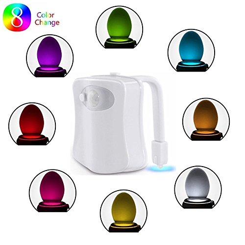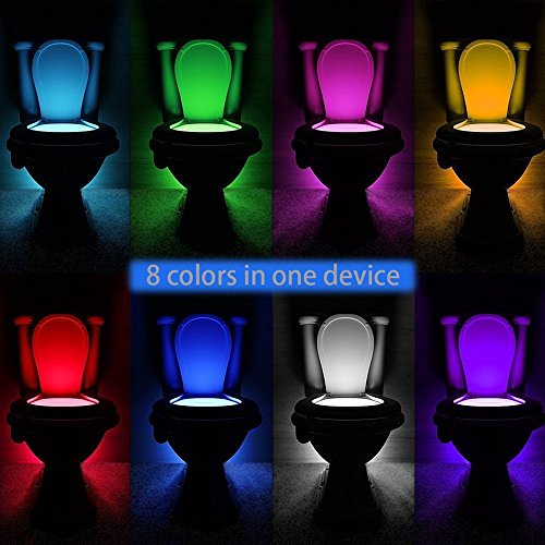 Toilet Night Light Motion Activated 8 Color Changing, Light Detection Sensor , Potty Training Light Up ,Bathroom Lighting LED Bowl Ligh Fit Any Toilet (White)