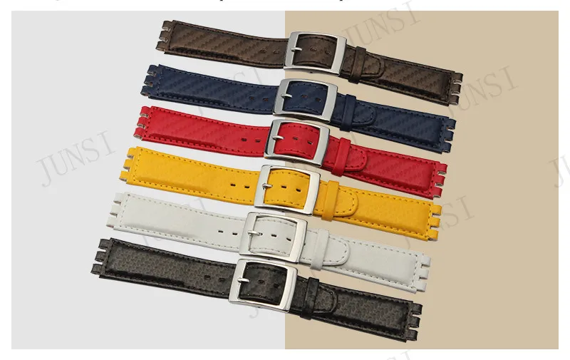 높은 품질 17 미리메터 방수 정품 가죽 시계 스트랩 밴드 swatch 악어 패턴 블랙 브라운 화이트