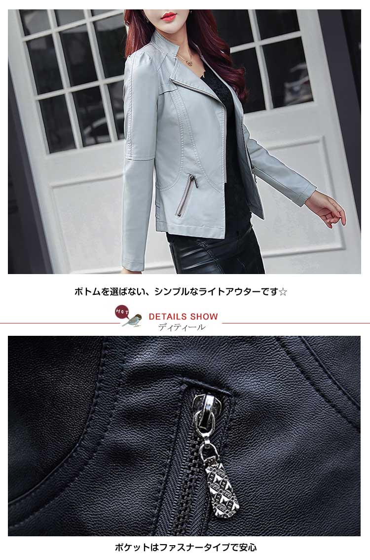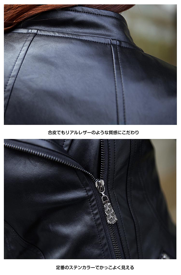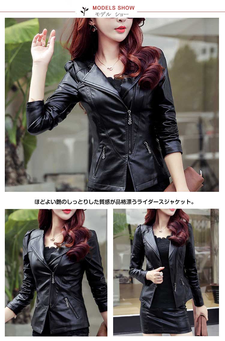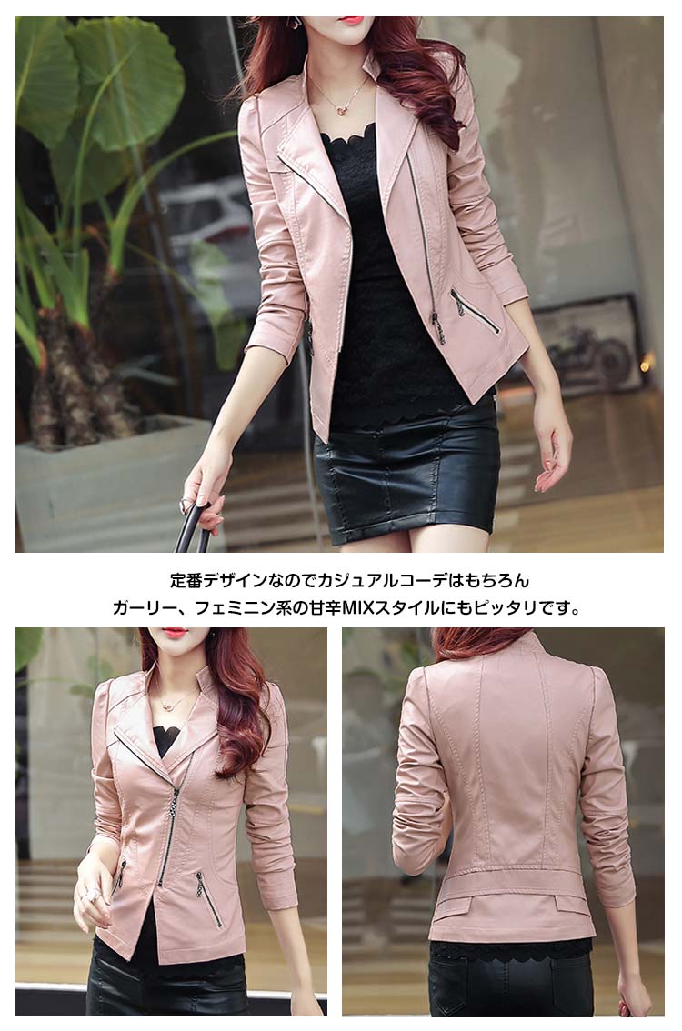 | ほどよい艶のしっとりした質感が品格漂うライダースジャケット。定番デザインなのでカジュアルコーデはもちろんガーリー、フェミニン系の甘辛MIXスタイルにもピッタリです。合皮なのにリアルレザーのような質感はデイリーに気負いなく年中愛用できる!ボトムを選ばない、シンプルなライトアウターです☆ | |