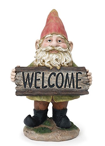 Welcome Happy Gnome 13 Inch Resin Decorative Indoor Outdoor Garden Statue Figurine