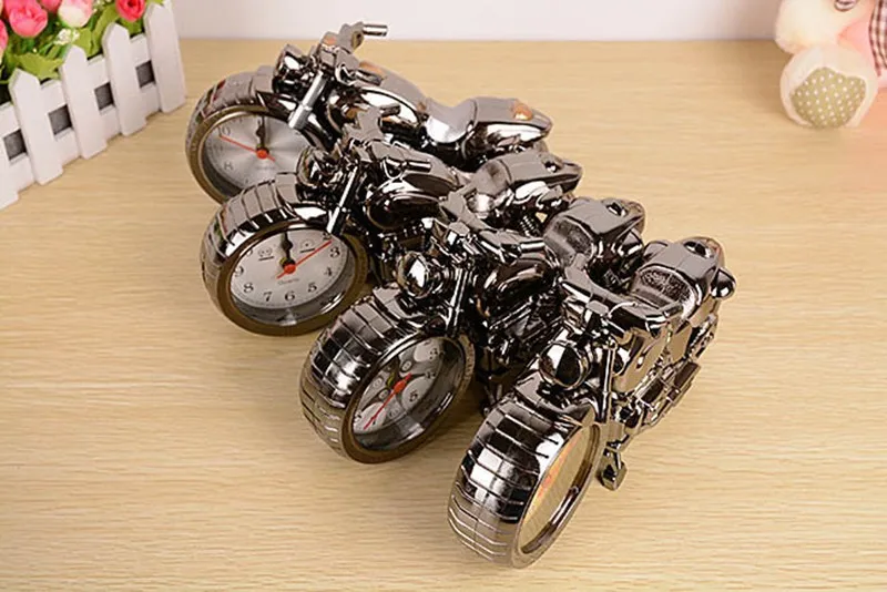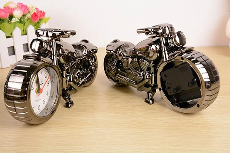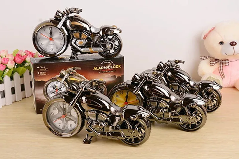 Product Description Product Name: 2016 New Free Shipping Friends Birthday Party Gift Needle Creative Motorcycle Shape Alarm Clock Full Description: Perfect for smaller items and ideal for retail store use, or use these Alarm Clock as gift for your friends birthday Summer Description:material: plastic; size:230*130*60mm; Color: metal color; shape: Motorcycle shape Material: Plastic for the case, Quuartz for the clock mechanism Product Size: 230*130*60mm(Approx) Packing: 1pcs alarm clock Packing in a paper gift box