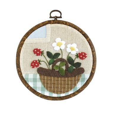 アップリケとししゅうで作るインテリア壁飾り。専用フープ付。技術レベルは初級~中級者向です。