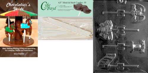 Cybrtrayd 'USA Lolly' Patriotic Chocolate Candy Mold with 50 4.5-Inch Lollipop Sticks and Chocolatier's Guide