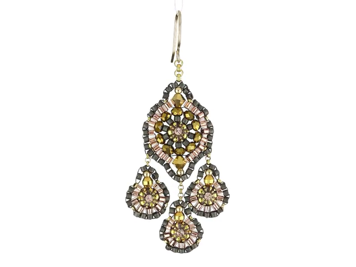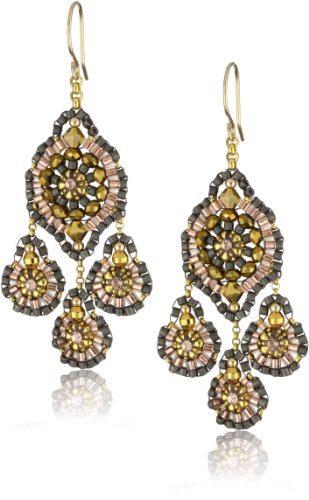 Miguel Ases Bronze Rondelle and Rose Gold Beaded Drop Earrings