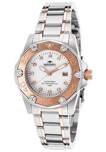 This high-class men's Aquaspeed is a stunning timepiece with a creamy white dial, a polished silver-tone stainless steel bracelet with rose-tone accents. Accompanied by luminous hands and markers, and a water resistance of 30M, this accessory is perfect for any occasion.Feature