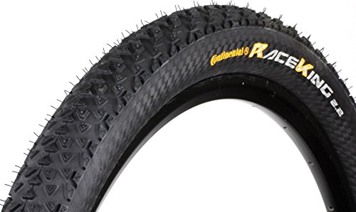 -. Binding : Sports -. Brand : Continental -. Feature : ORIGINAL KING- Having achieved legendary status, the Race King heralded the advent of the current Continental King range. / BLACK CHILI- Features Continental's revolutionary Black Chili Compound which reduces rolling resistance by 26% improves grip by 30% and adds 5% more mileage out of your tire. / PROTECTION SYSTEM- Continentals ProTection system with an additional puncture protection layer is 25% lighter and offers 30% more puncture protection. / HANDMADE IN GERMANY-Continental has been hand making their tires since 1871, maintaining the integrity of tradition, while evolving with the most advanced technology. / FOLDING TIRE- Makes it easy to take a spare. -. IsAdultProduct : 0 -. Label : Continental -. Manufacturer : Continental -. Model : Continental -. NumberOfItems : 1 -. PackageQuantity : 1 -. ProductGroup : Sports -. ProductTypeName : OUTDOOR_RECREATION_PRODUCT -. Publisher : Continental -. Studio : Continental -. Title : Continental Race King Fold ProTection Bike Tire