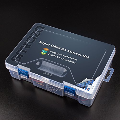 UNO R3 Starter Kit for Arduino - This essential learning kit includes over 47 parts and 160 common components to start your arduino projects. It's perfect for starting to learn programming the Arduino and building circuits.