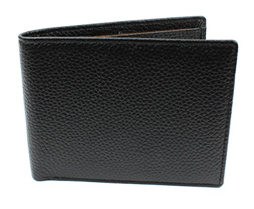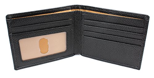 - Feature : Made From Genuine Leather With Pebbled Texture - Interior Lined With Tan Fabric / Bifold Design - Slim/Front Pocket Size - Measures: 4 1/2" x 3 1/2" / Wallet Lined With RFID Blocking Fabric - Stop Identity Theft - Shields The Personal Information On RFID Chips From E-Pickpockets Trying To Steal Data / Features: ID Slot With Viewing Window, Seven Card Slots, and Two Bill Compartments / Maintain Your Safety, Privacy, and Personal Security - 90 Day Money Back Guarantee