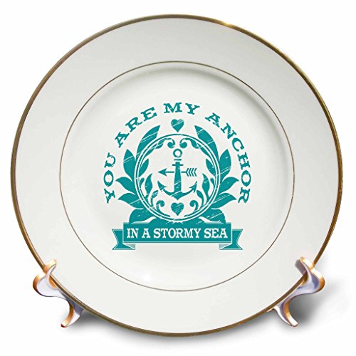 3D Rose Nautical Theme with Anchor in Blue Porcelain Plate, 8"