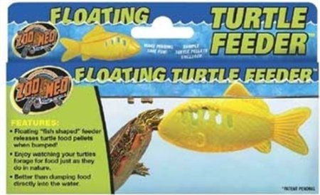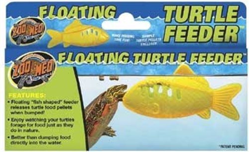 Studio : TopDawg Pet Supply Publisher : TopDawg Pet Supply Binding : Misc. Product Description Zoo Meds Floating Turtle Feeder makes feeding time Fun. Floating fish shaped feeder releases turtle food pellets when bumped. In nature, turtles forage for food and often use their front legs to help get their food. Translucent orange, allowing them to see the food pellets inside. No longer do you have to simply dump their food into the water. Provides a revolutionary new way to feed your pet turtle. Enjoy watching your turtles forage for food just as they do in nature. Better than dumping food directly into the water. 0