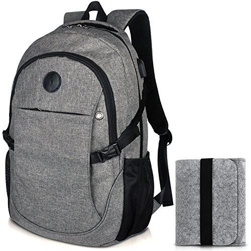 -. Feature : Water resistant nylon laptop backpack with smooth polyester lining, durable and easy to clean / External dimension: 19.3"Hx11.8 "L x 5.5"W. Weight: 1.3lbs/0.59 kg. With padded laptop compartment holds up to 15.6 Inch laptop / High quality large capacity laptop backpacks, 3 zipper pockets, 2 sides pockets, 3 inner slots and 1 laptop sleeve, provides enough space for your Laptop, books, pens, keys, wallet, cards and so on / External USB with built-in charging cable for easy connection. Two earphone holes design, enjoy your favorite music wherever you like / Padded mesh back, ventilation and breathability. Adjustable padded shoulder straps, comfortable to wear