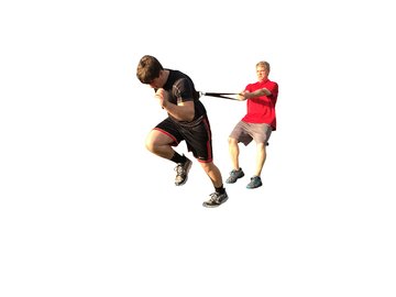 Secure the shoulder harness and adjust it according to the athlete's comfort. The coach or partner holds the other end of the nylon lead and will provide resistance on a moderate level. Start running in place for about 5-10 seconds then slowly advance. Before starting, make sure the line from the partner to the runner is straight and without slack. The slack might cause injury to the partner if they are suddenly jerked foward.