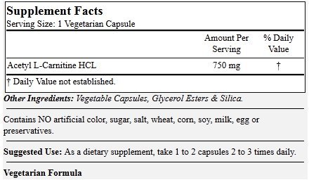 -. Title : Acetyl L-Carnitine 750mg (120 Vegetarian Capsules)