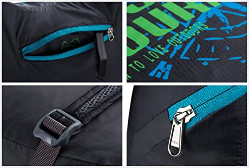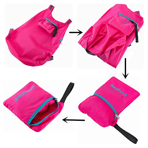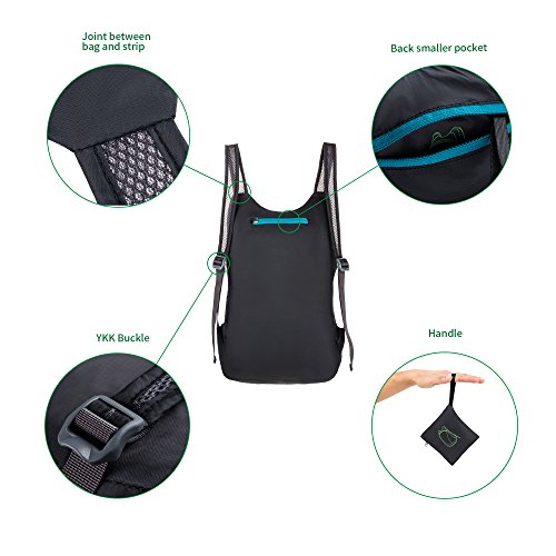 -. Feature : Made with high quality tear and water resistant material, provides extra strength and long-lasting performance with the lightest weight possible (Weights: 7.5 oz) / 12L storage room, enough for daily use; zipped inner pouch to hold small things / Breathable mesh shoulder straps; Durable YKK zipper / Fold the backpack into its own pouch for storage (no more excess baggage fees), and unfolds from pouch to backpack in seconds. Packed Size: 3.9¡± ¡Á 3.9¡± ¡Á 1.2¡± / Perfect for day-to-day use or day trips, vacation, travel, day hikes, school, camping and shopping, and great gift for everyone.