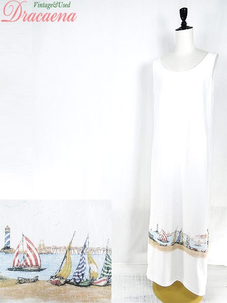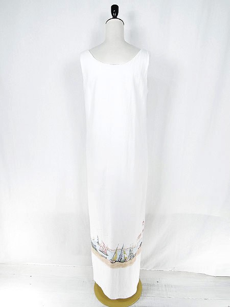 Ladies ブランド- カラー白 メール便不可 コンディション★★★ 素材コットン 表記サイズM スタッフコメント胸付近、裾プリント上付近にシミあり。 実寸サイズ 着丈 131 cm 身幅 45 cm 肩幅 36 cm スリット 31.5 cm ※ウエスト・ヒップ以外は平置き採寸