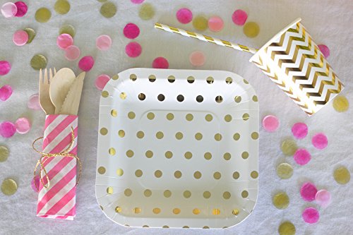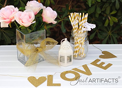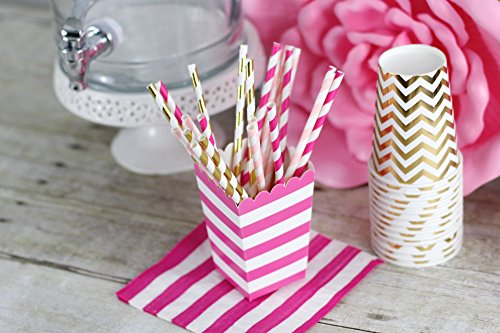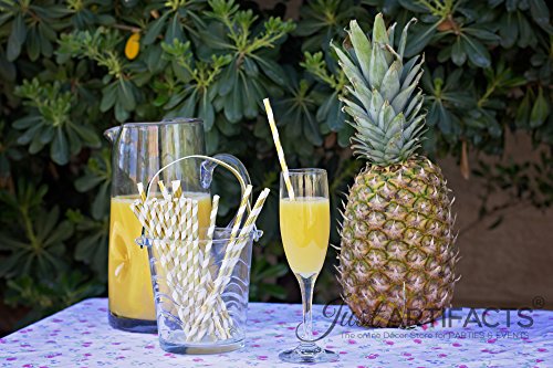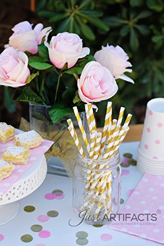 Just Artifacts - Decorative Paper Straws 100pcs - Striped Pattern - Metallic Gold - Decorative Paper Straws for Birthday Parties, Weddings, Baby Showers, and Life Celebrations! …