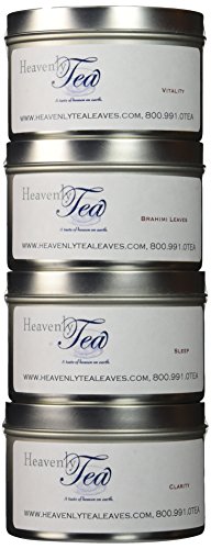 -. Feature : Enjoy a gourmet collection of 4 bestselling Heavenly Tea Leaves loose organic wellness teas! / Contains: Organic Detox, Organic Stress Ease, Organic Cold Calm & Organic Chamomile Lavender / Approximately 20 servings of tea per can / 100% caffeine free! / Comes in a eco-friendly gift box!